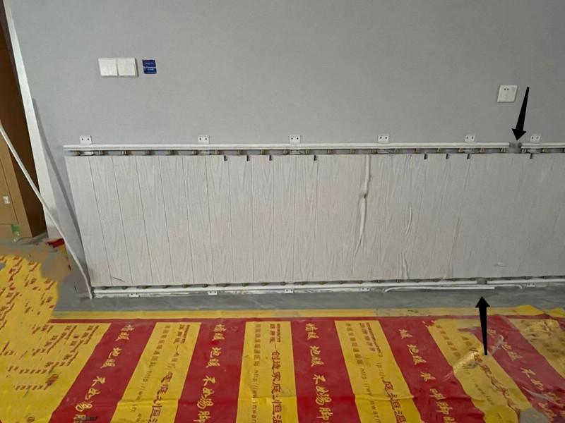 5.1、银屋超薄暖气片安装中(系统管道预埋地下,侧边管道在墙面外)