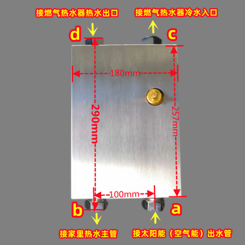 从空气能水箱出水口接出管道,与自控中心右下水口连接,中间不要有用水点,自控中心的左下水口与家里的热水主管连接。