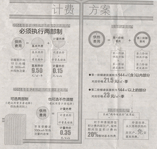 供暖计费首推“两部制” 按平方米收费至少涨4元