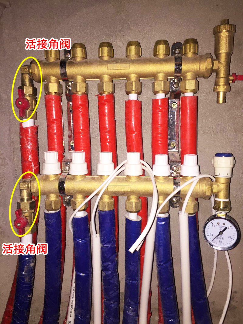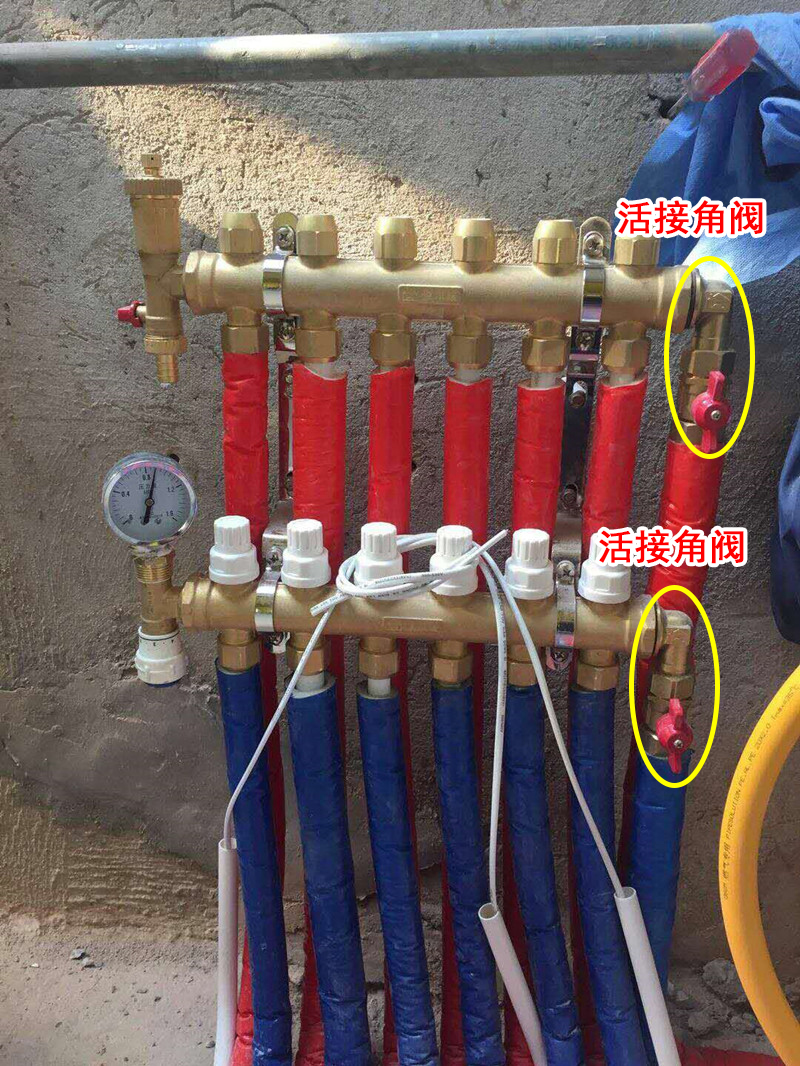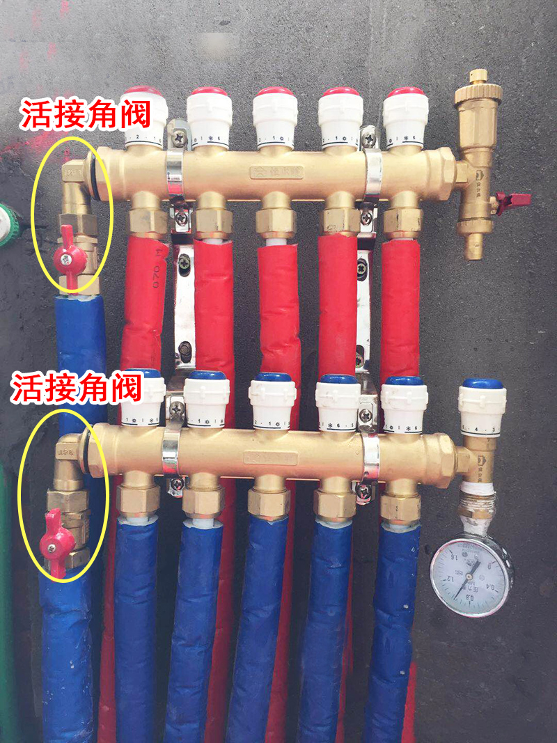 (恒尔暖活接角阀与分水器安装一起图片)