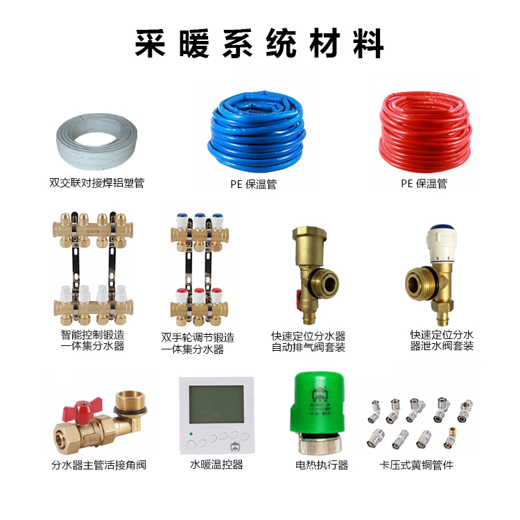 这是一个什么概念呢?这是我们根据给很多客户做的预算报价,然后除以他们房屋的建筑面积估算一个大概的预算范围。由于即使相同面积而房型不同或装修方案不同,安装踢脚板地暖的长度、需要的系统管道长度和配套的辅材多少都差别较大,还有一点就是,即使相同户型相同装修方法,如果毛坯房时安装和装修后安装采暖系统的设计方案完全不同,毛坯房章鱼式系统,采用分水器、铝塑管和保温管做系统,装修好的房子采用双管并联系统,只用铝塑管和卡压式管件做系统,不用分水器和保温管,因此所用的系统管道和辅材配件多少差别很大。因此这种按照建筑面积估算需要多少费用的方法不准确,只能作为参考。