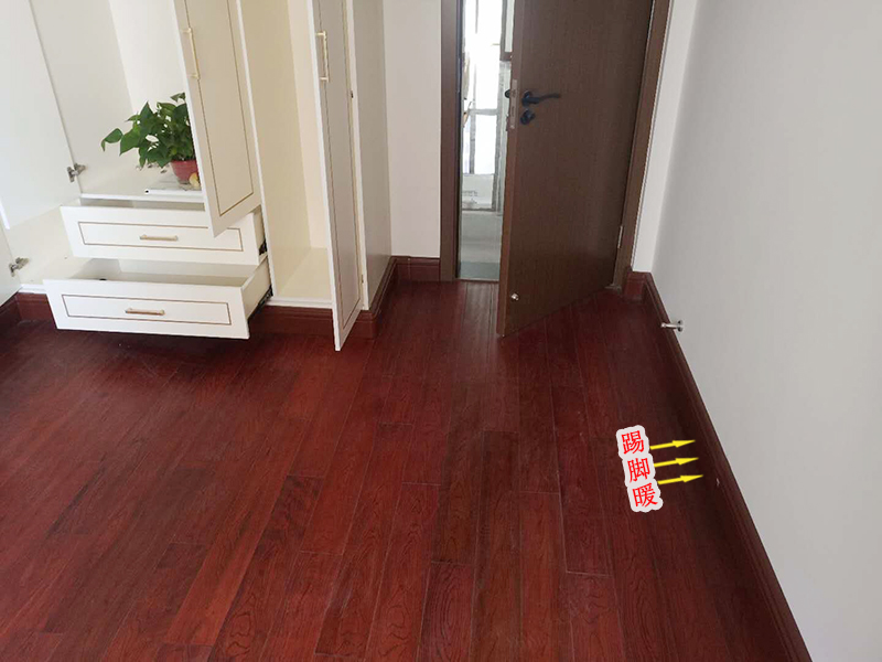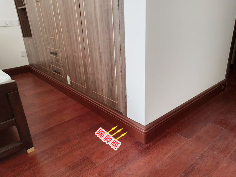 踢脚板暖气是替代踢脚线的位置沿着房间一圈安装的,而且采用散热极快的铝合金材质,直接从房间四周地脚线位置向中间辐射散热,升温迅速,升温速度可以达到地暖的10倍以上,10-20分钟就能让房间达到理想温度。