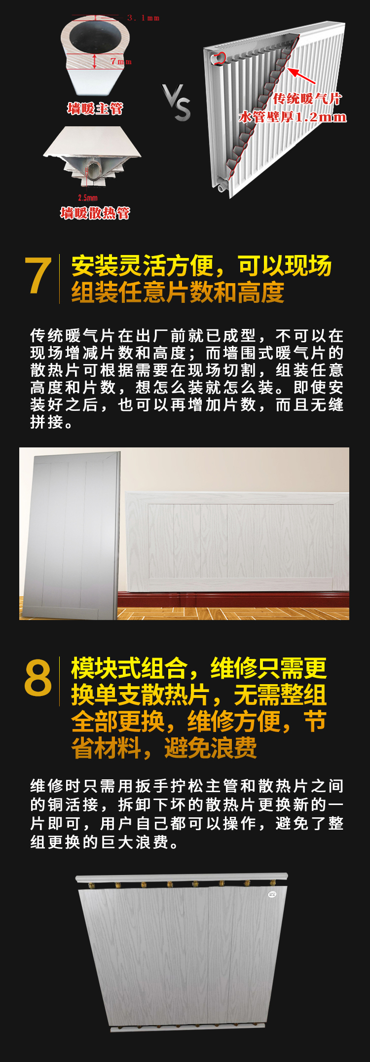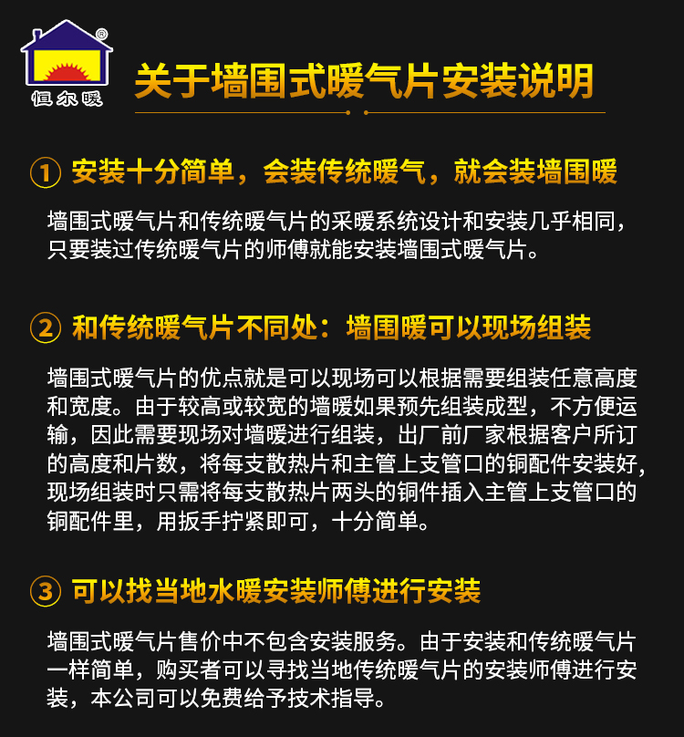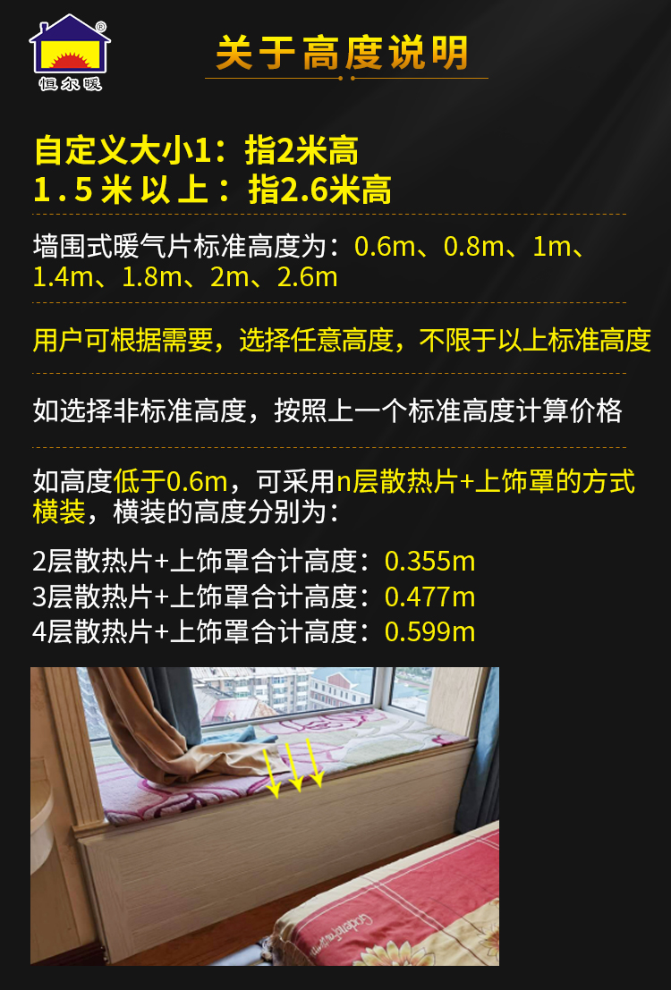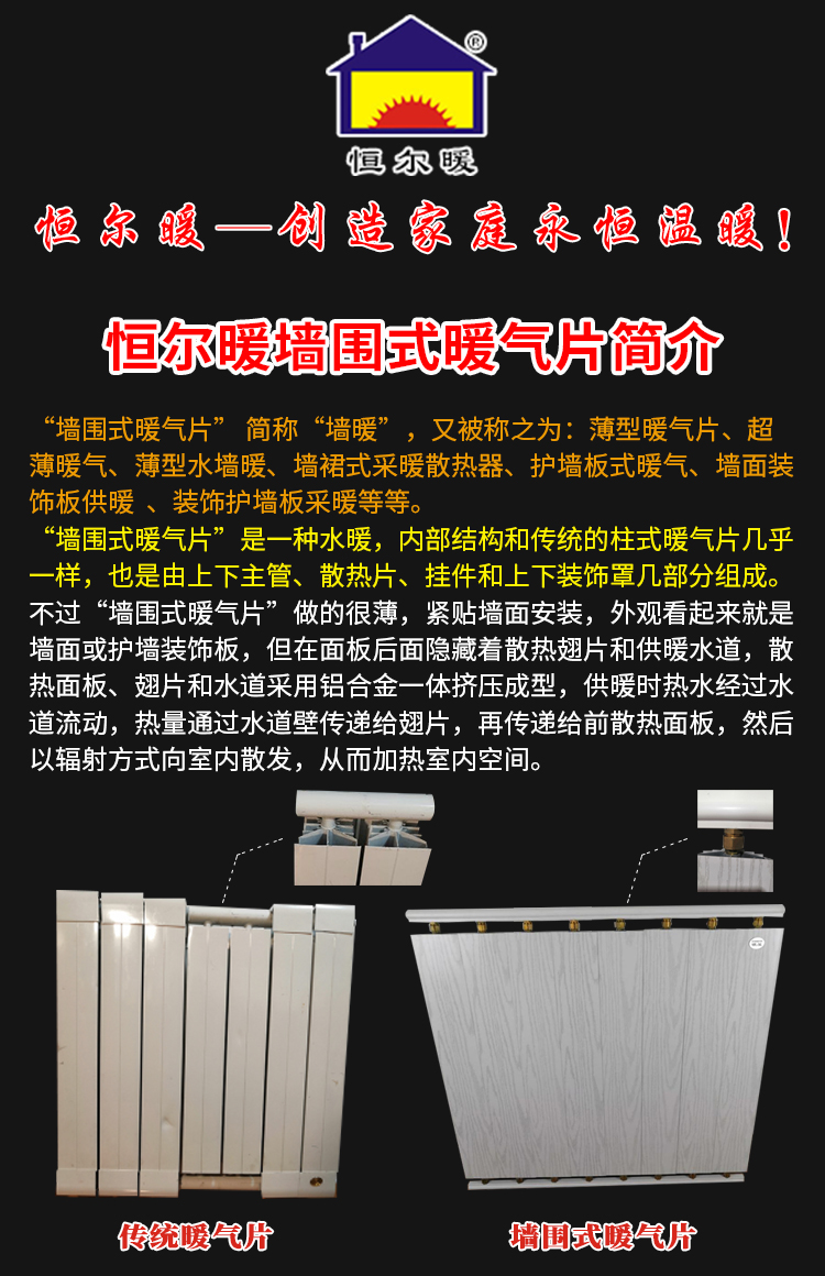 恒尔暖墙围式暖气片可任意组装高度宽度供暖装饰二合一暖气