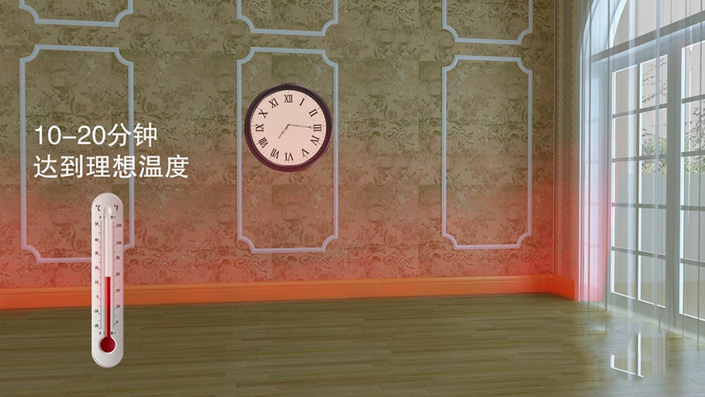 D、主要采用的是辐射供暖方式,热辐射是热传导中比较快的方式,只要踢脚暖表面温度高了,人在房间内迅速就可以感觉到温暖;