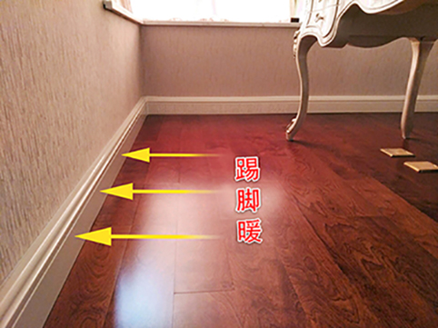 针对那些地暖温度不够的家庭,从地暖分水器主管或分水器末端引出2根20的供暖主管,在家里再安装一套踢脚暖系统,只要把原来的踢脚线拆除,换上这种踢脚暖,供暖管道采用双管并联的方式沿着整套房子的外墙内侧布置,隐藏在踢脚暖后面,过墙打孔,每个房间一个回路,安装上专用踢脚暖温控阀门,可以实行分室控温,不用的房间可以关闭,也可以调节每个房间温度。这个踢脚暖采暖系统和地暖是独立的2个系统,既可以同时使用,也可以单独使用任何一个系统,这样不仅保证了室内供暖温度,又不破坏原来的装修,是地暖不热比较完美的解决办法。