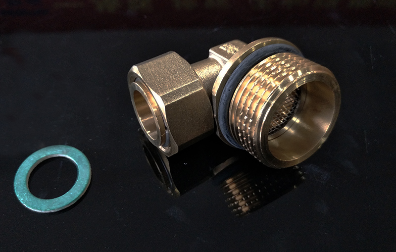 这个活接弯头有合肥恒暖暖通研发生产的,它采用H58-3精铜制造,有2种规格,一种里面带过滤网的和一种不带过滤网的,如下图: