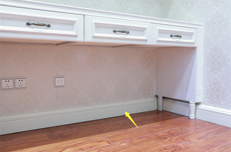 踢脚板暖气片的另一个优点就是供暖装饰二合一,外观看起来就是十分漂亮的实木踢脚线,安装好后,家里根据看不到供暖设备,只能看到比一般踢脚线更加高端大气的踢脚线。就是已装修好的房子安装时,墙面也看不到难看的供暖系统管道。安装时,只要把原来的踢脚线拆除,换成这种踢脚板暖气片,供暖的系统管道沿着其后面墙面隐藏式布置,过墙打孔,不用过室内门,墙面上几乎看不见管道,更不用担心管道上面的墙面被熏黑了,而且踢脚板暖气片主要依靠的是辐射散热,表面没有对流孔,与墙面和地面之间不留缝隙,不会像传统暖气片那样因强对流而熏黑上面的墙面。从下面踢脚板暖气的安装效果就可以看出,踢脚板暖气外观看起来就像实木踢脚线,不仅墙面看不到难看的暖气片和供暖管道而且外观漂亮和周围的白色家具相互呼应。