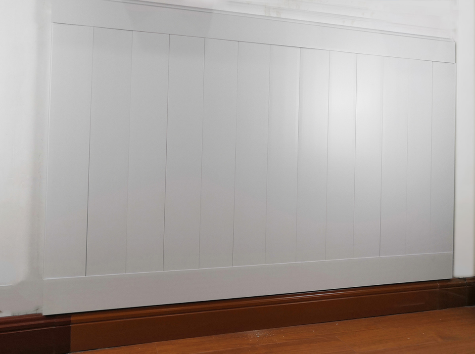式暖气片外观看起来就是装饰护墙板,既可以整面墙安装当着护墙装饰板,也可以只安装1米高左右作为墙围装饰板使用,采用实木纹颜色,具有一定的装饰作用,不仅不会与装修装饰冲突,而且与居装饰相互搭配,将供暖和家居装饰有机融为一体。
