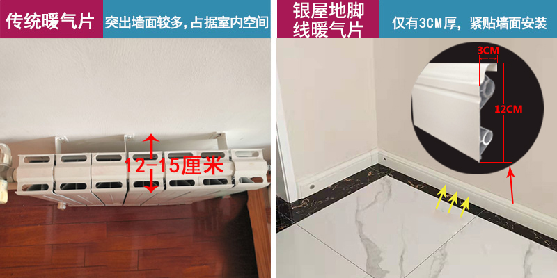 银屋踢脚板供暖和暖气片相比具有以下优势
