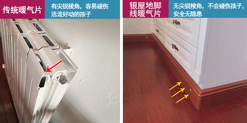 优势三、银屋踢脚板供暖表面光滑,没有尖锐棱角,不妨碍儿童活动,安全无隐患;
