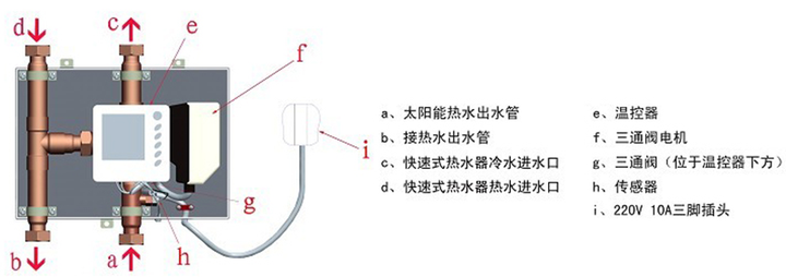 这样既避免了太阳能热水器和燃气热水器两边都安装阀门和每次手动切换的麻烦,又能在太阳能出水温度不够时进行二次加热,减少直接用自来水加热的能源浪费。自动控制,方便,舒适,节能。