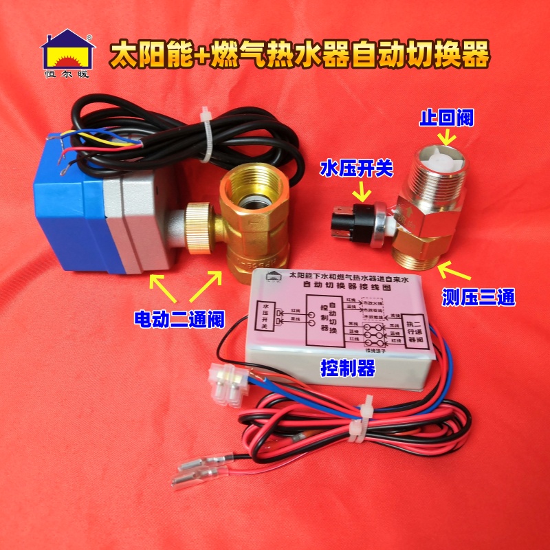 恒尔暖自动切换器由水压开关、止回阀、电动二通阀和控制器组成,通过智能控制系统实现太阳能与燃气热水器的无缝切换,彻底告别手动操作的麻烦。