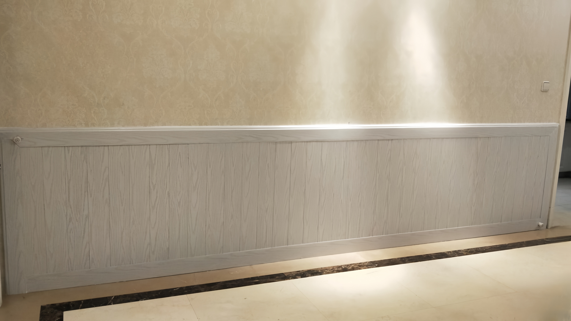 等我能下床回家时,客厅、卧室的老暖气片全没了,墙面变得平平整整,摸着还温乎。儿子指着墙面上的暖气片说,这就是从网上找到的恒尔暖超薄护墙板暖气片,才三厘米厚,跟护墙板一样贴在墙上,没有凸起的边角,我走路再也不用绕着走。
